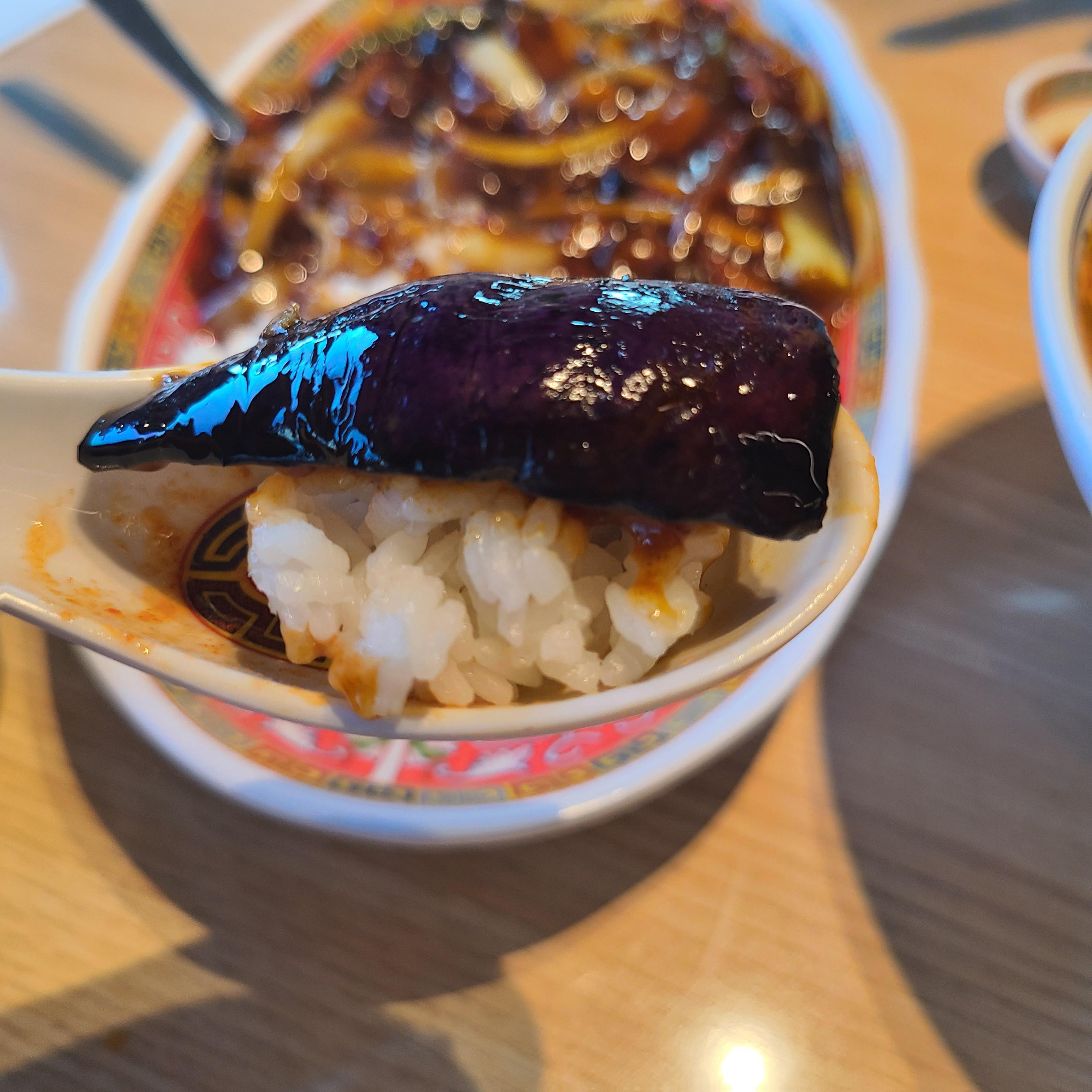 -. 물고기의 향을 내면서 가지와 같이 볶은 소스를 밥 위에 얹어주는 메뉴입니다. 중국은 가지요리가 유명하여 어향육슬로도 많은 분들이 접해보셨을텐데요!. 개인적으로 특별함까지는 느끼지 못하였습니다. 가지는 부드러웠으나 밥이 좀 오래 된 느낌? 이었습니다.