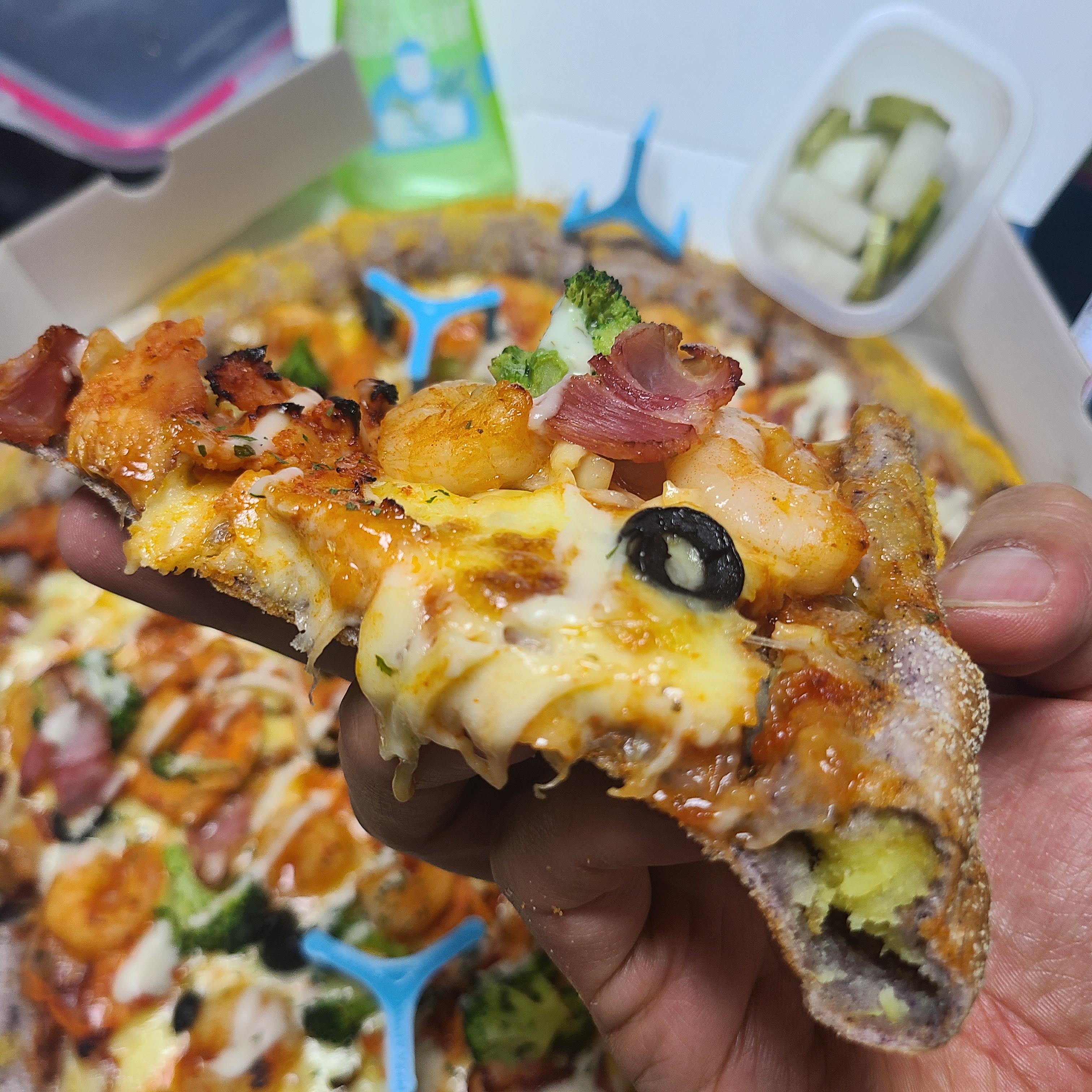 부담없이 즐길 수 있는 장점이 있는 피자입니다. 저는 비싸지만 후회안하는 쉬림프&핫치킨골드피자를 추천하지만!